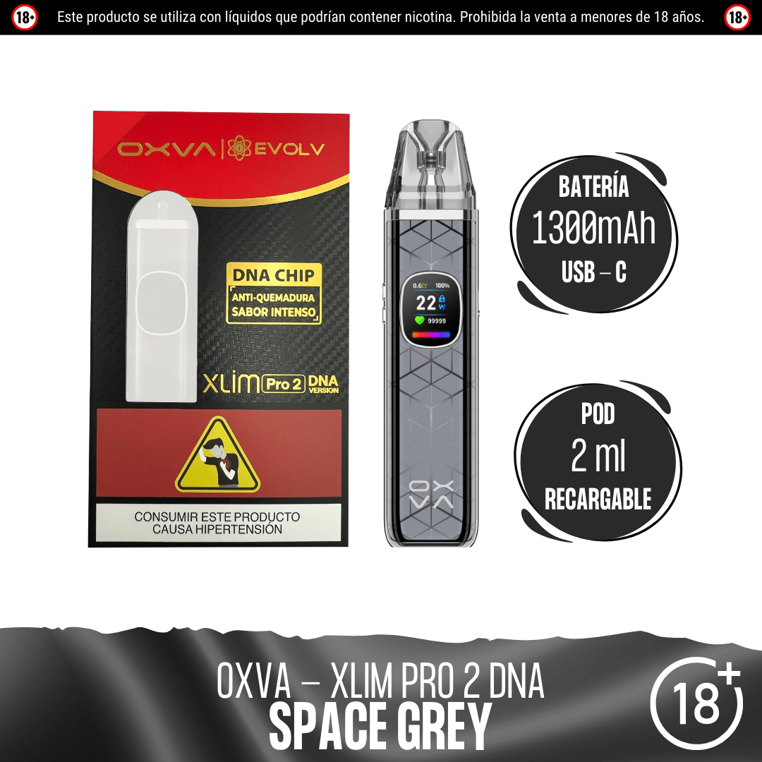 El OXVA XLIM PRO 2 DNA es un sistema de cápsulas de vapeo que presenta un chip DNA, desarrollado en colaboración entre OXVA y EVOLV, que permite un control preciso de la temperatura y la repetición del sabor para evitar los golpes secos.